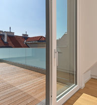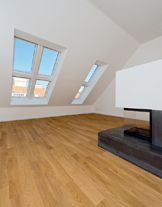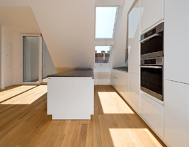 Eine einzige, großzügige Wohneinheit auf einer Ebene und direktem Liftzugang. Sehr geräumiger Wohn- / Essbereich mit moderner Küche, offenem Kamin und Terrassenausgang.
